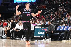 上半場,熱火新秀亞庫喬尼斯延續(xù)火熱的外線手感,在15分鐘的時間里,投籃8中6,三分球7中5,砍下17分2籃板的數(shù)據(jù)。