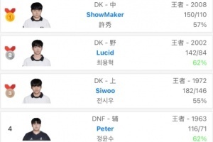 體育資訊2月10日訊?最新韓服排行榜,DK上中野包攬前三,Peter來到第四,Peyz來到第五啦!