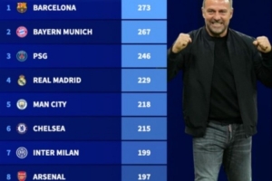 弗里克接手巴薩后的五大聯(lián)賽球隊(duì)各項(xiàng)賽事進(jìn)球榜: