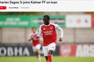 體育資訊2月11日訊 阿森納官方宣布,外租21歲小將查爾斯·薩戈到瑞典球隊(duì)卡爾馬,租期至2027年1月。
