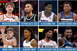 體育資訊11月12日訊 近日,三次獲得扣籃大賽冠軍的卡特選出了他的2026年扣籃大賽人選: