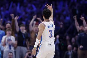 談及過去一周融入雷霆的感受,麥凱恩表示:“一切都特別好,我全是好評(píng)。球隊(duì)很歡迎我,這里氛圍超棒、能量很足?!?/p>