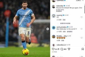 魯本·迪亞斯傷愈后首次在主場出戰(zhàn),他首發(fā)踢滿全場,賽后魯本·迪亞斯社媒寫道:“想念伊蒂哈德球場,我們再次出發(fā),一場一場來?!?/p>