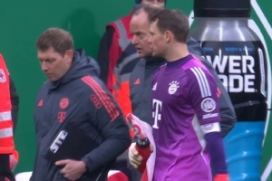 體育資訊2月15日訊 拜仁在德甲3-0完勝不萊梅,39歲的諾伊爾在比賽中因小腿問題主動要求中場離場,隨后被換下?!秷D片報(bào)》撰文談到此事。
