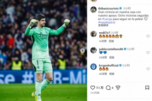 庫爾圖瓦社媒寫道:“在主場取得重要勝利,感謝你們的支持。西甲8連勝,讓我們繼續(xù)為冠軍而戰(zhàn)!”
