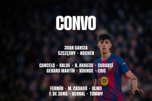 巴薩客戰(zhàn)赫羅納大名單: