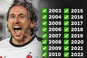 體育資訊2月17日訊 OneFootball統(tǒng)計表明,莫德里奇連續(xù)24年在成年足球賽事中取得進球。