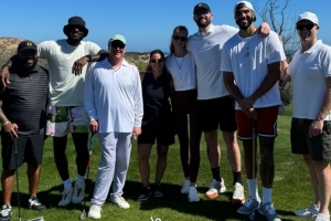 體育資訊2月19日訊 今日塔圖姆更新IG動態(tài),曬出自己與詹姆斯、樂福一起打高爾夫的相關(guān)動態(tài)。