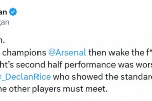 摩根寫道:“表現(xiàn)不夠好。若想成為冠軍,阿森納就他X趕緊醒醒吧,別等到為時已晚。昨晚下半場的表現(xiàn)是我多年來見過的最糟糕的。唯獨賴斯值得寬容——他展現(xiàn)的拼勁和強度正是其他球員必須達到的標準。”
