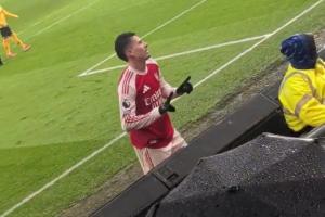 阿森納2-2狼隊,馬丁內(nèi)利面對狼隊球迷挑釁時回應(yīng)“2-1”的手勢,但此后槍手遭狼隊絕平。