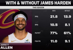 加盟后:場均21.8分10.5籃板,投籃命中率77%,場均出手11.0次
