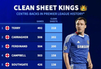德國轉(zhuǎn)會市場統(tǒng)計(jì)了英超歷史上完成過最多次零封的中衛(wèi)球員,詳情如下: