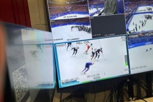 在米蘭冬奧會(huì)短道速滑冰場(chǎng)一側(cè),有一個(gè)被稱作“視頻裁判室”的小房間。據(jù)視頻裁判薩拉·亨德森介紹,比賽中一旦出現(xiàn)異?!邕x手接觸摔倒、速度驟降,導(dǎo)致名次變化——冰面上的裁判或視頻裁判室成員會(huì)發(fā)出“標(biāo)記”指令。視頻裁判室與主裁判之間通過(guò)無(wú)線電實(shí)時(shí)溝通。通常情況下,視頻裁判會(huì)精選一至三個(gè)關(guān)鍵角度,清晰還原事件經(jīng)過(guò),供主裁判參考。
