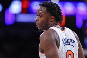 此役尼克斯前鋒阿努諾比攻防兩端表現(xiàn)不俗,一度防出杜蘭特7中0,出場40分鐘16投8中,三分7中2、罰球2中2拿到20分2籃板1助攻4搶斷,正負值+6。