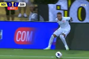 下半場第70分鐘,桑托斯后場長傳發(fā)動反擊,34歲的內(nèi)馬爾奮起直追,結(jié)果仍然無法阻止球出邊線,甚至還險些踉蹌摔倒。