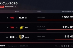 體育資訊2月24日訊 外媒統(tǒng)計2026LCK杯海外峰值: