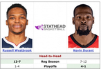 這將是杜蘭特和威少生涯第20次在常規(guī)賽交鋒,此前杜蘭特7勝12負(fù)落下風(fēng),季后賽杜蘭特4勝1負(fù)。