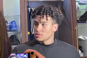 賽后,和掘金簽下雙向合同的KJ·辛普森在接受采訪時(shí)談到本場(chǎng)自己出戰(zhàn):“在這里打球的感覺(jué)真好,就像回家一樣。感謝這次上場(chǎng)機(jī)會(huì),也感謝這支球隊(duì)?!?/p>