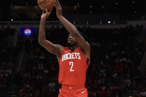 比賽進(jìn)行到第四節(jié),火箭球員多里安·芬尼-史密斯出戰(zhàn)11分35秒,3投1中得到3分。