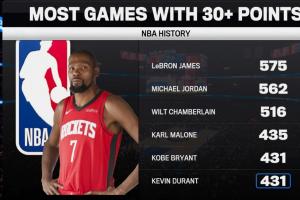 5、科比·布萊恩特&凱文·杜蘭特——431場(chǎng)