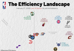 橫軸代表進攻效率,越靠右越好,縱軸代表防守效率,越靠上越強。第一象限的球隊多為發(fā)揮出色的球隊,而在第三象限的球隊通常為戰(zhàn)績比較糟糕的球隊。