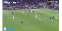 第33分鐘,國米左路傳中到禁區(qū)內(nèi),巴雷拉頭球攻門頂高了↓
