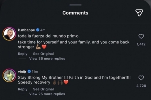 姆巴佩寫道:“把全世界的力量都給你,兄弟。為自己和家人好好休養(yǎng),你會(huì)以更強(qiáng)大的姿態(tài)歸來(lái)!”