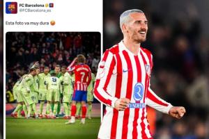 賽后格列茲曼曬出慶祝照,背景是出局后癱倒的巴薩球員。格列茲曼同時(shí)寫道:“這張照片太狠了?”