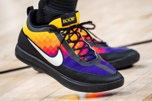 球隊(duì)曬出了賽前布克熱身的畫面,還有他腳上新配色球鞋的特寫。這雙球鞋是Book 2 “The Valley”配色。以球隊(duì)城市版球衣為靈感。