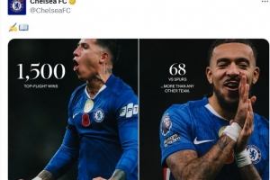 本場比賽也是切爾西隊(duì)史收獲的第1500場頂級聯(lián)賽勝利,其中對陣熱刺68場勝利是所有對手中最多的,藍(lán)軍官推也曬出海報(bào)紀(jì)念達(dá)成這一里程碑時(shí)刻。