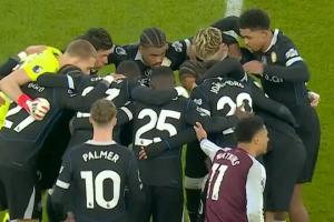 比賽下半場,落后的主隊維拉正急于開球時,切爾西眾將集體來到中圈,將球團(tuán)團(tuán)圍住,隨后一同加油喊話,維拉球員對此很是不滿,不斷向主裁判投訴這一行為。國外解說員也表示,這一舉動“有些荒唐”。