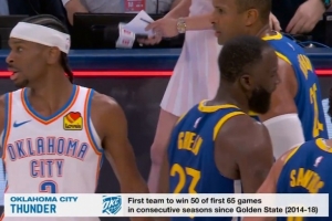 體育資訊3月8日訊 今日NBA常規(guī)賽,雷霆主場104-97拿下勇士,戰(zhàn)績來到50勝15負(fù)。