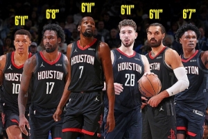 當(dāng)你的球隊(duì)擁有申京和杜蘭特這樣的球員時,這可能很難想象。然而,由于陣容的構(gòu)建方式,火箭隊(duì)在場上擁有許多長臂球員,能夠整場比賽給對方進(jìn)攻球員帶來困擾。超過一半的球員臂展達(dá)到7英尺(2米13)。
