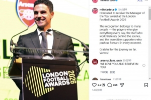 阿爾特塔寫道:這份榮譽(yù)屬于很多人,屬于每天全力以赴的球員們,屬于幕后辛勤工作的工作人員,也屬于每一個(gè)時(shí)刻都給予我們支持的球迷們。