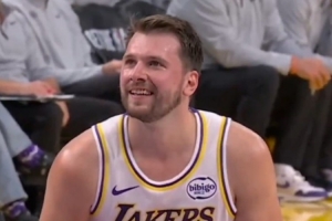 GIF-首節(jié)東契奇造了前隊(duì)友布倫森一個(gè)犯規(guī),咧嘴笑了