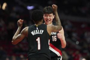 GIF-韋斯利助攻楊瀚森暴扣,自己比楊瀚森還興奮