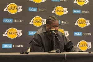 體育資訊3月11日訊 NBA常規(guī)賽,湖人120-106擊敗森林狼,賽后艾頓參加新聞發(fā)布會。