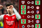 雷速體育3月12日訊 在今天凌晨結(jié)束的一場歐冠1/8決賽首回合比賽中,阿森納1-1戰(zhàn)平勒沃庫森,這場平局也讓他們追平了一項隊史紀(jì)錄。