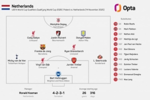 體育資訊11月15日訊 世預(yù)賽歐洲區(qū)小組賽,荷蘭前往客場挑戰(zhàn)波蘭。本場比賽,荷蘭排出的首發(fā)陣容中沒有任何一名意甲球員,2018年9月9日以來的正式比賽首次出現(xiàn)如此局面。