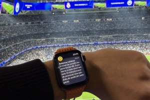 記者Jose Padilla社媒曬出照片,由于伯納烏球場聲浪太高,他的智能手表報警。