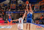 新疆男籃球員伊力福拉提(藍衣)在比賽中投籃。趙凱 攝首節(jié)比賽,廣東男籃迅速進入狀態(tài),打出開局優(yōu)勢,隨后一度將分差擴大至18分,半場以54:48領先。易邊再戰(zhàn),新疆調(diào)整防守策略,加快攻防轉換,外援勞森主導反擊,率隊打出攻勢,以71:69反超進入末節(jié)。