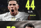 根據(jù)LiveScore的統(tǒng)計,自上賽季開始以來,英超中場球員里只有布魯諾-費爾南德斯各項賽事的進球參與數(shù)(59)比恩佐-費爾南德斯(44)多。
