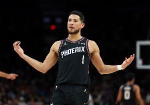 上半場,太陽后衛(wèi)布克穩(wěn)定輸出,打了17分鐘12投6中,三分3中2、罰球4中3拿到17分3籃板,正負值+1。