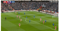 比賽第13分鐘,薩卡門前近在遲尺的頭球被皮克福德神勇?lián)涑觯S后邊裁舉旗示意薩卡越位在先。