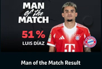 賽后,迪亞斯以51%得票率當(dāng)選為球迷票選最佳。
