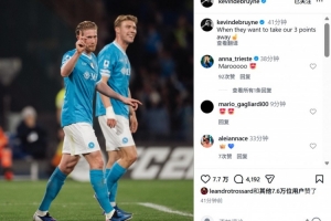 本場比賽德布勞內(nèi)替補(bǔ)登場,賽后他也在社媒曬出與進(jìn)球功臣霍伊倫合照,配文寫道:“當(dāng)對(duì)手想從客場拿走我們?nèi)值臅r(shí)候??”