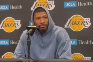體育資訊3月15日訊 NBA常規(guī)賽,湖人主場(chǎng)127-125加時(shí)險(xiǎn)勝掘金,賽后斯瑪特接受采訪。
