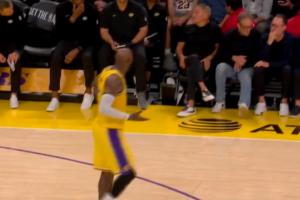 最后,詹姆斯抬頭 試圖從大屏幕得知八村塁的犯規(guī)次數(shù)。