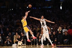 在早早取得兩位數的領先優(yōu)勢后,湖人在第二節(jié)將優(yōu)勢擴大到了17分。此后,湖人始終占據主動,直到掘金在第三節(jié)末段開始大舉反撲。最終,掘金取得了領先,并在第四節(jié)末段將領先優(yōu)勢擴大到了8分。突然之間,輪到湖人身陷絕境了,但他們最終奇跡般地完成了大逆轉。