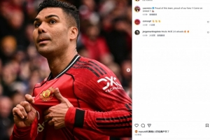 本場(chǎng)比賽卡塞米羅先拔頭籌,賽后他也在個(gè)人社媒曬出自己手指曼聯(lián)隊(duì)徽的慶祝動(dòng)作,配文寫道:“為我們的球隊(duì)感到驕傲,為我的球迷驕傲!加油紅魔!”